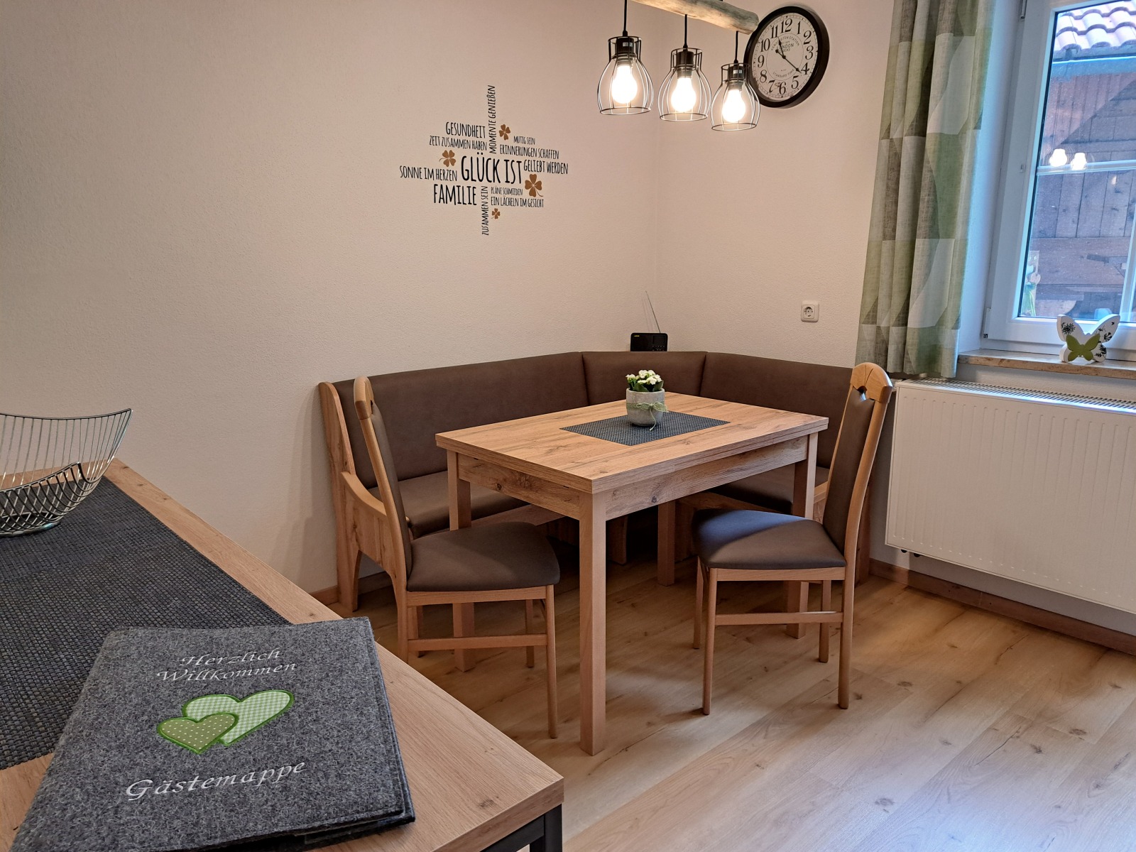 NEUE Küche ab Februar 2025!! Unsere Ferienwohnung „Kleeblatt“ ist eine gemütliche Wohnung im 1. Stock mit ca. 55qm und eigenem Terrasseneingang.